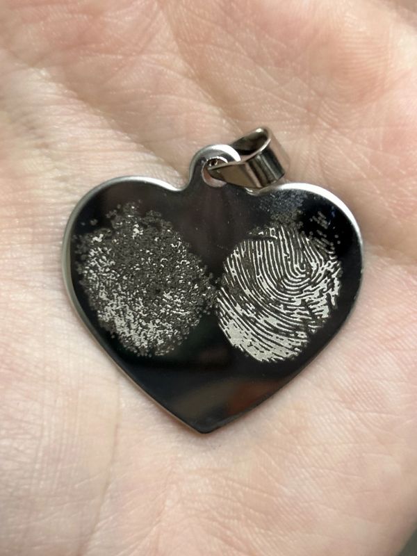 On items purchased from us or items you bring in. We can engrave initials, names, dates, and fingerprints.